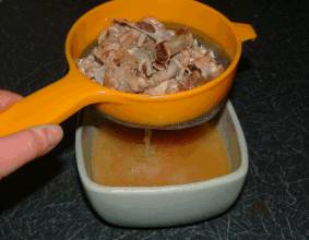 Make some chicken stock. Take the bones from your roast chicken, place in a large pan and cover with water. Gently boil for an hour. All the goodness from the leftovers is absorbed into the water, which looks cloudy and soup-like. Sieve the stock to remove any bones and allow to cool. (Or you could cheat and use a stock cube) |