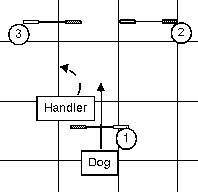Most dogs will chose to follow your physical cue. Now try running your dog on the left, between 1 and 3 give verbal command Left and turn to the Right. Does this show how important your physical handling of the dog is? Have you done this without realising when you have run a course, and then been suprised that your dog 'took the wrong jump'?